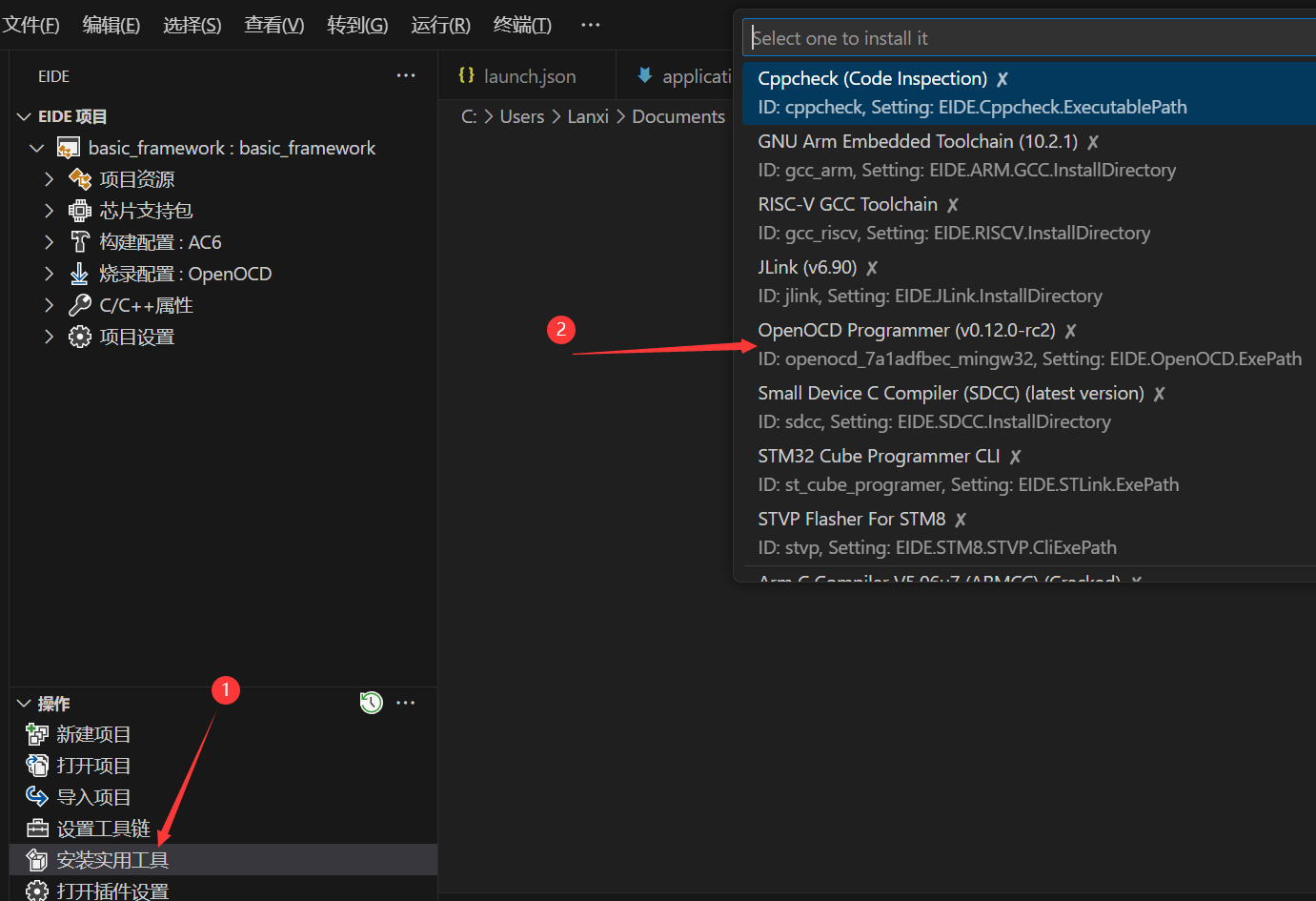 - Embedded IDE:提供后续工程所在的环境,安装后Eide会自动下载一些依赖,没安装NET.6的也会自动安装,注意确认即可