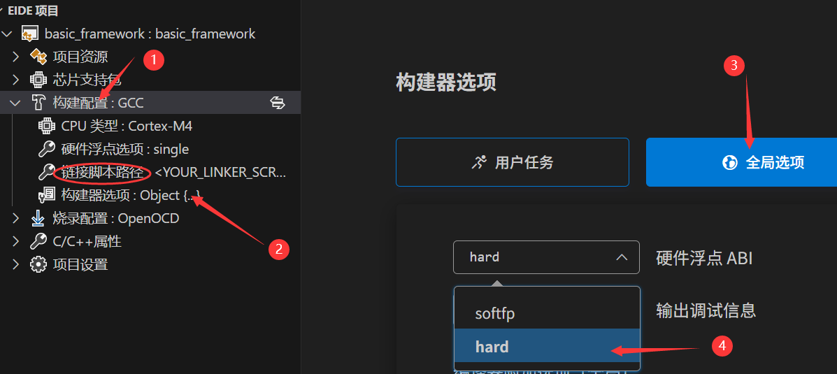 填入链接脚本(.ld)路径,勾选硬件浮点